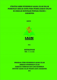 Mutmainnah.2021. “Strategi Guru Pendidikan Agama Islam Dalam Pembinan Akhlak Siswa Pada Pembelajaran Online di Sekolah Menengah Pertama Negeri 3 Samarinda”. Skripsi, Program Studi Pendidikan Agama Islam Jurusan Pendidikan Islam Fakultas Tarbiyah dan Ilmu Keguruan Institut Agama Islam Negeri (IAIN) Samarinda. Penelitian ini dibimbing oleh Marniati Kadir, M. Pd dan Siti Nasiah, M. Pd.