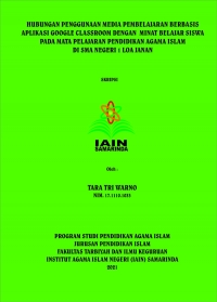 Tara Tri Warno, 2021. “Hubungan Penggunaan Media Pembelajaran Berbasis Aplikasi Google Classroom Dengan Minat Belajar Siswa Pada Mata Pelajaran Pendidikan Agama Islam di SMA Negeri 1 Loa Janan ”.Skripsi, program Studi Pendidikan Agama Islam, Fakultas Tarbiyah dan Ilmu Keguruan Universitas Islam Negeri Sultan Aji Muhammad Idris Samarinda (UINSI). Samarinda. Penelitian ini dibimbing oleh Dr. Husni Idris, M. Pd selaku pembimbing I dan H. Susanto, Lc.M.Pd. I selaku pembimbing II.
